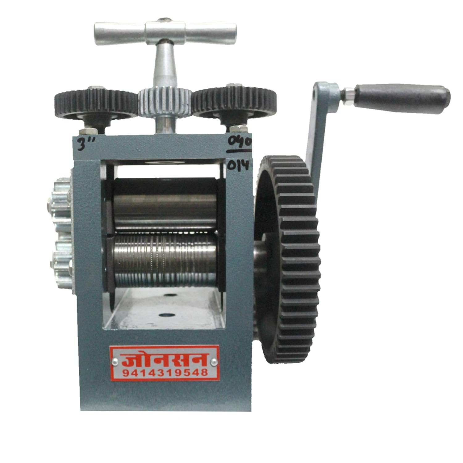 Johnson Tools 3" Rolling Mill Gold and Silver marwari and Rajwari Design machine for Jewellers and Metalsmiths Made In Highest Quality WPS Made Rollers. Marwari and Rajwari Design machine Ideal for jewelers, Metalsmiths and crafts-people for giving a beautiful prints on gold and silver items. Marwari, Rajwari and rajputi ornaments ( For aad, timniya and rakhdi) design making machine. Machine is made in high quality cast iron. Special Computer Design made with high accuracy by professional. marwari and Rajwari Design making machine, Rolling Mill Machine, Rolling Mill Gold and Silver marwari and Rajwari Design machine, Rolling Mill Machine for jewelers, Metalsmiths and crafts-people