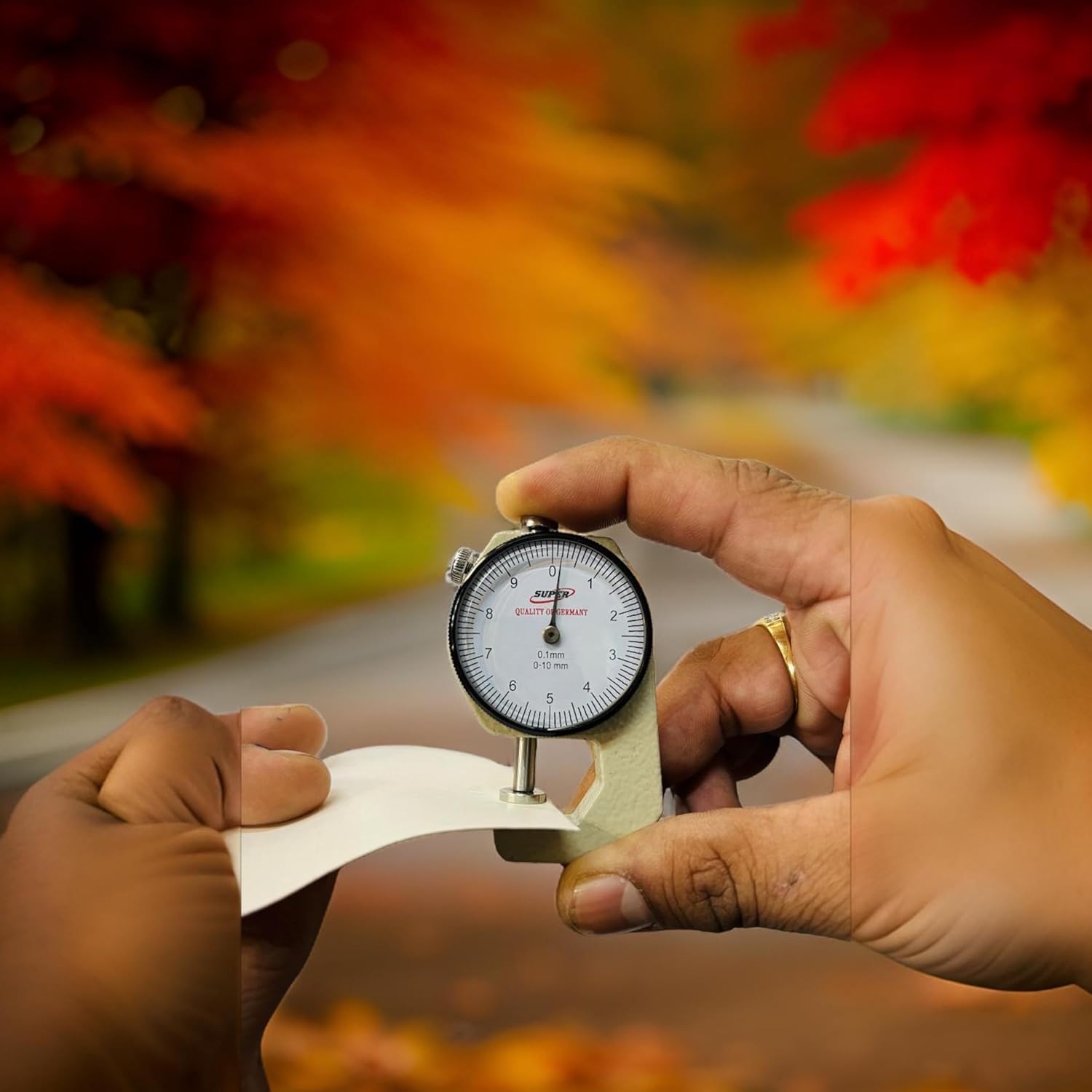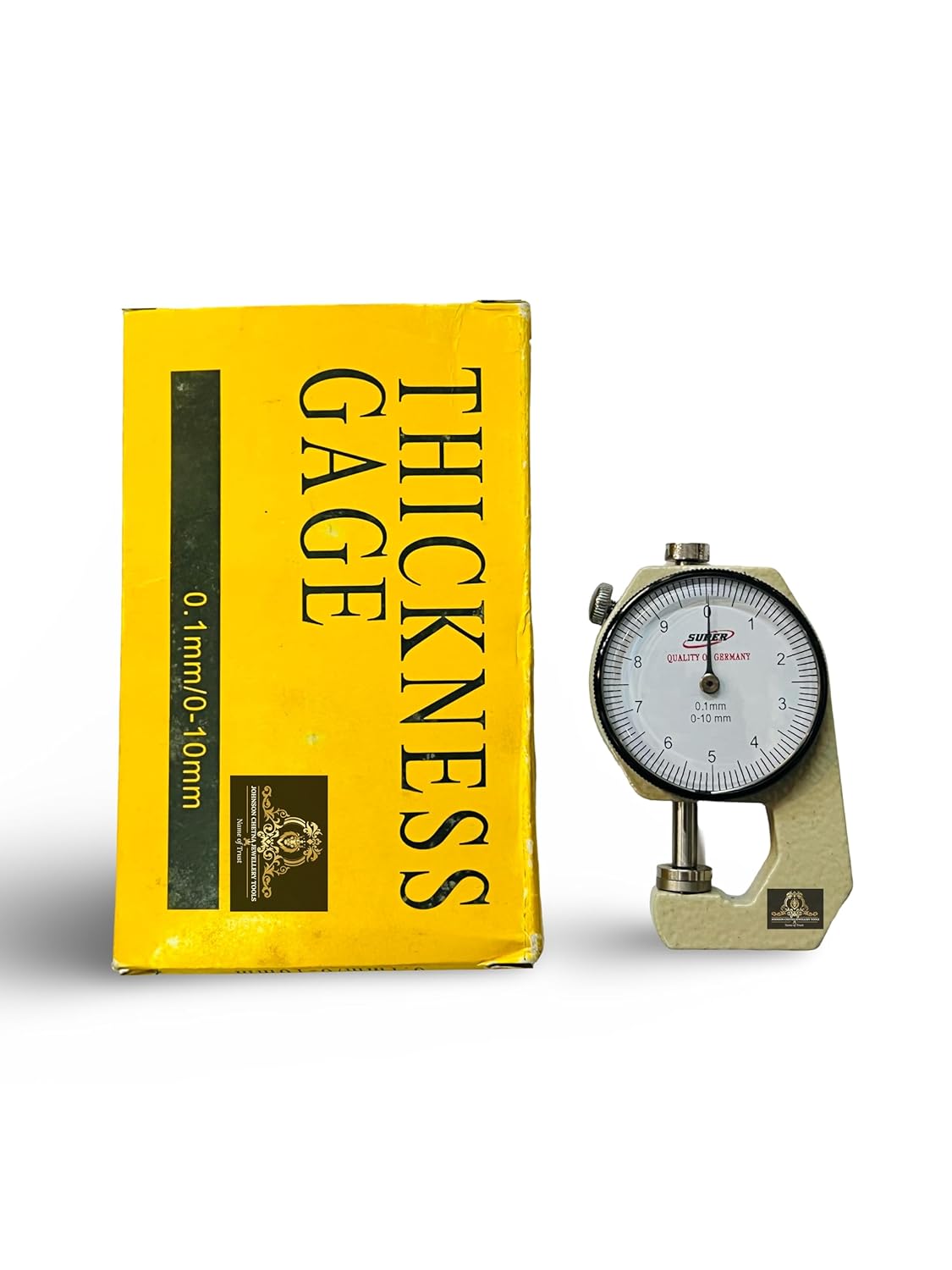 Johnson Tools Dial Thickness Gauge Meter (0.1mm to 10mm Measuring Tool) Flat Pocket Feeler Gauge for Metal, Paper, Jewelry. Precision Tool for Workshop Uses