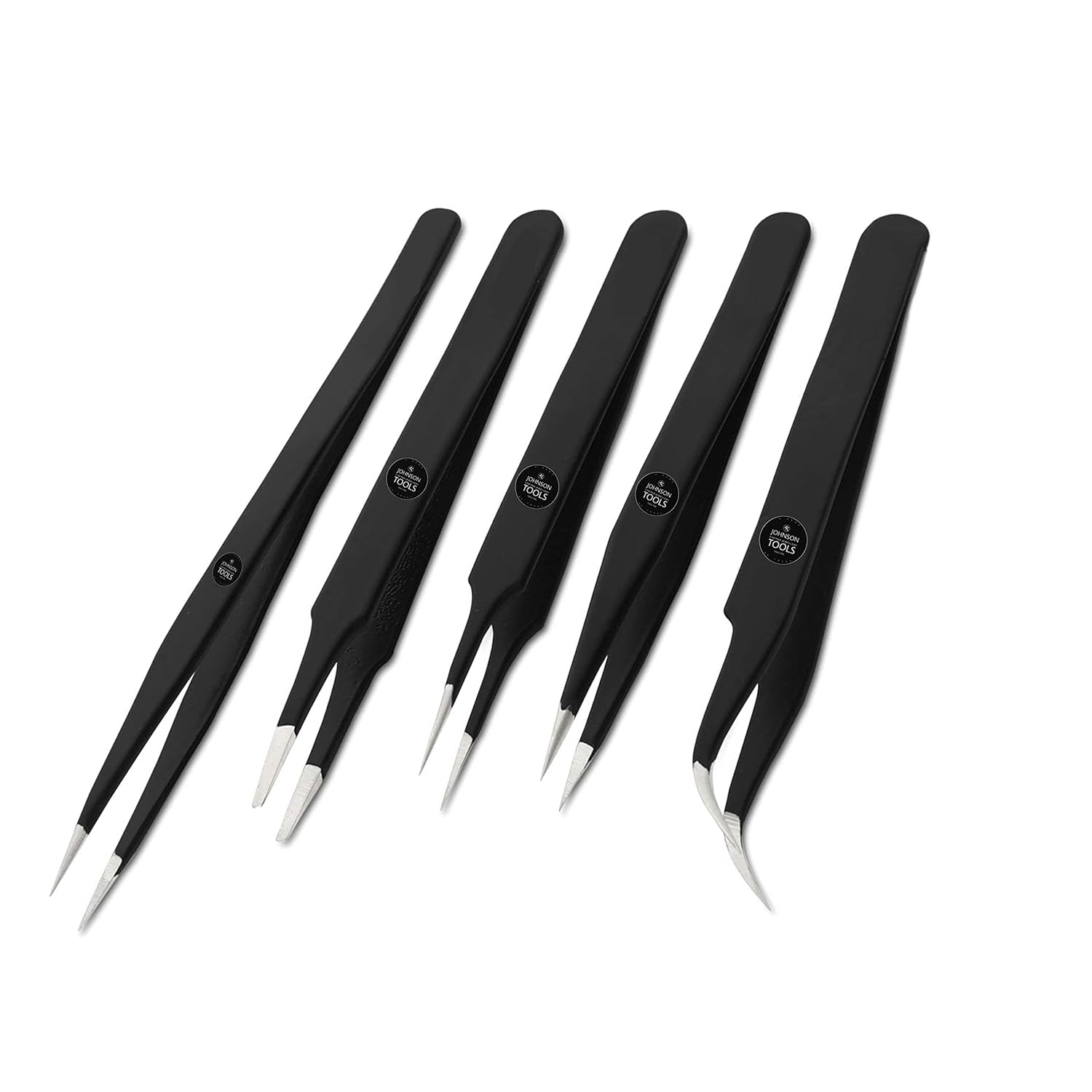 Johnson Tools ESD Multifunction Upgraded Anti-Static Professional Tweezers for Eyebrows, Women, Splinter, Ingrown Hair Removal, Electronic Repairing, Soldering, Crafting Tool Kit(Pack of 5 Pieces)