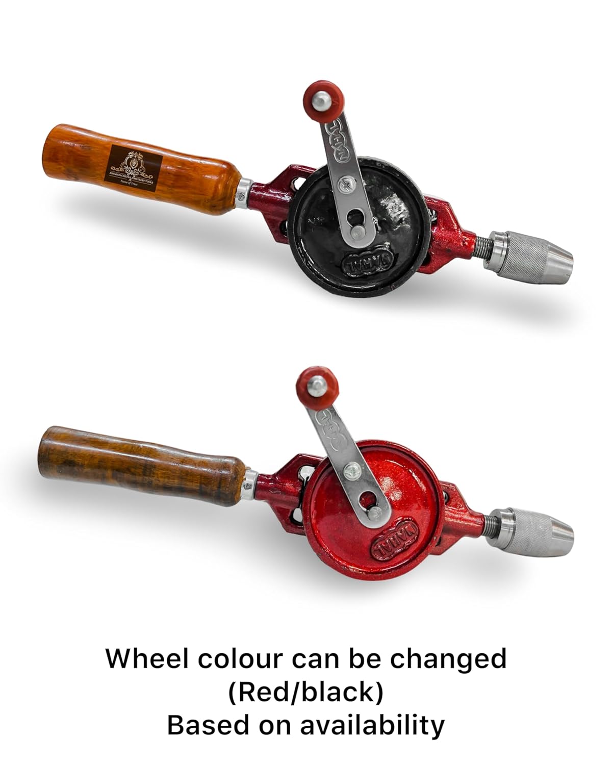 Johnson Tools Nahal 1/4'' Hand Drill Machine with Wooden Handle (Color - Red, Size - 6mm)