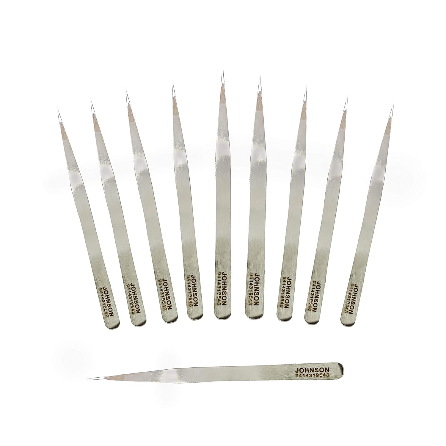 Johnson Tools Set of Straight Tip Stainless Steel Tweezers for Mobile/Gadget/Laptop and Jewelry Repair (Color - Chrome, Set of 10 Pieces)